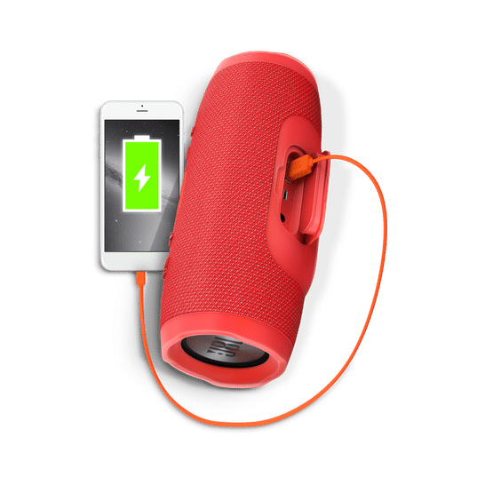 Built-in rechargeable Li-ion battery supports up to 20 hours of playtime and charges smartphones and tablets via USB.
